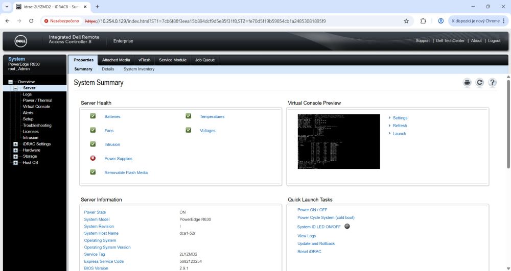Nastavení iDrac: dhcp / uživatel: root / heslo: calvin