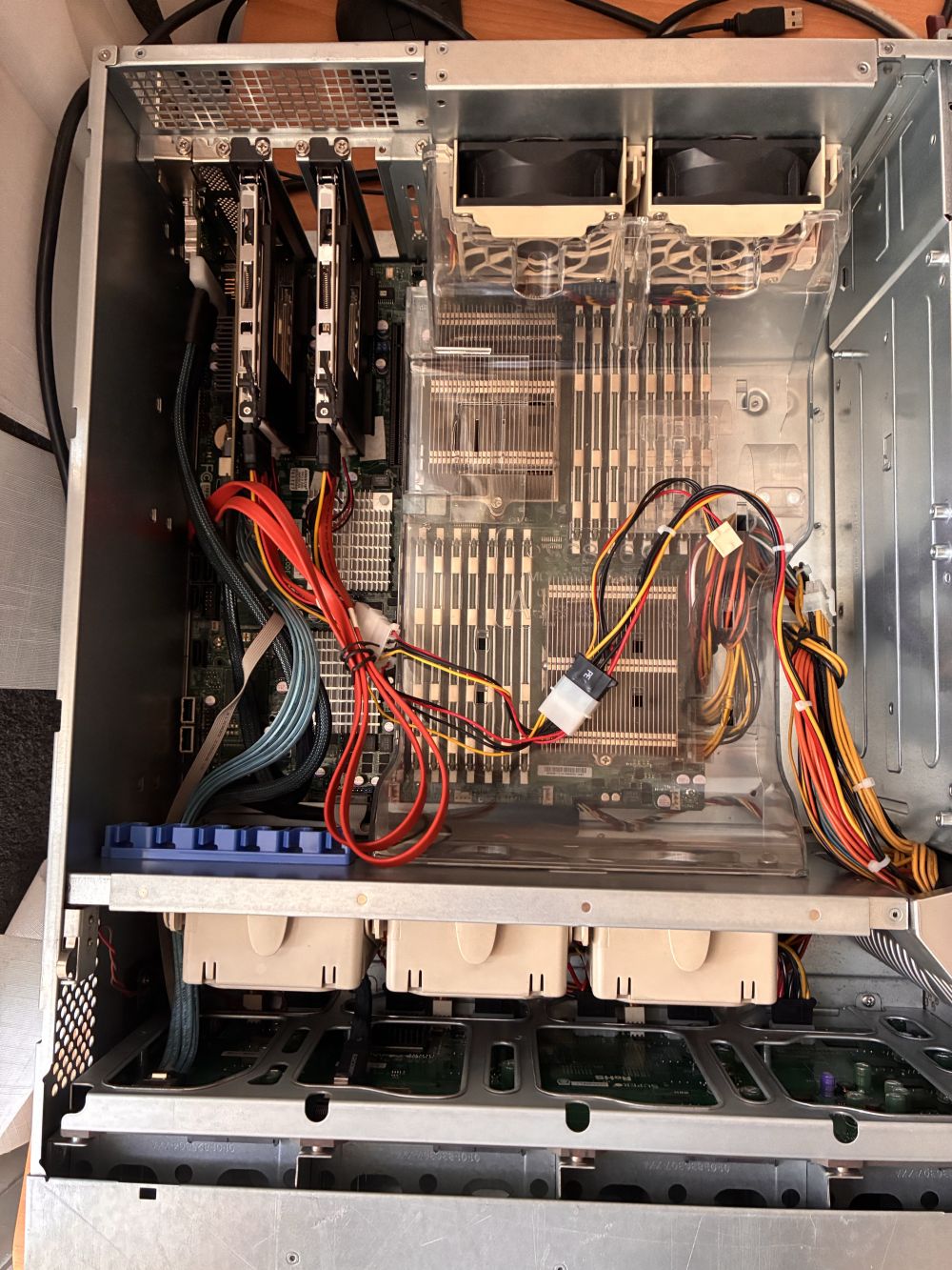 V case je základní deska s 2x AMD procesory řady Bulldozer (nebo podobné) a 4GB moduly.